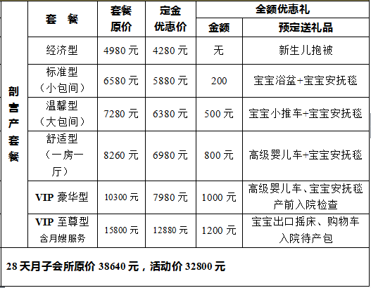 6、活动只限第一次预定者,原已预定的准妈妈套餐升值可享受本次活动定优惠价及相应套餐礼品活动;